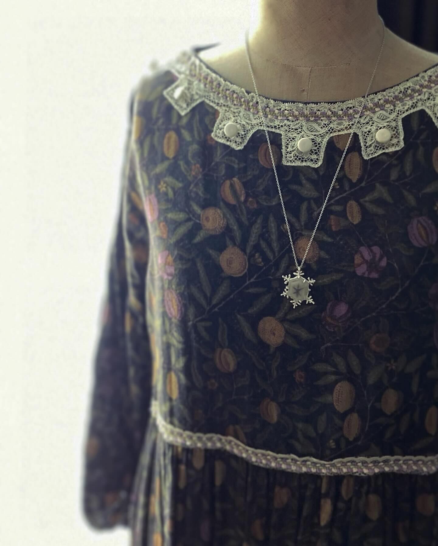 胸元を飾る永遠に溶ける事の無い雪の結晶...そんなロマンティックなネックレスに仕立てました。