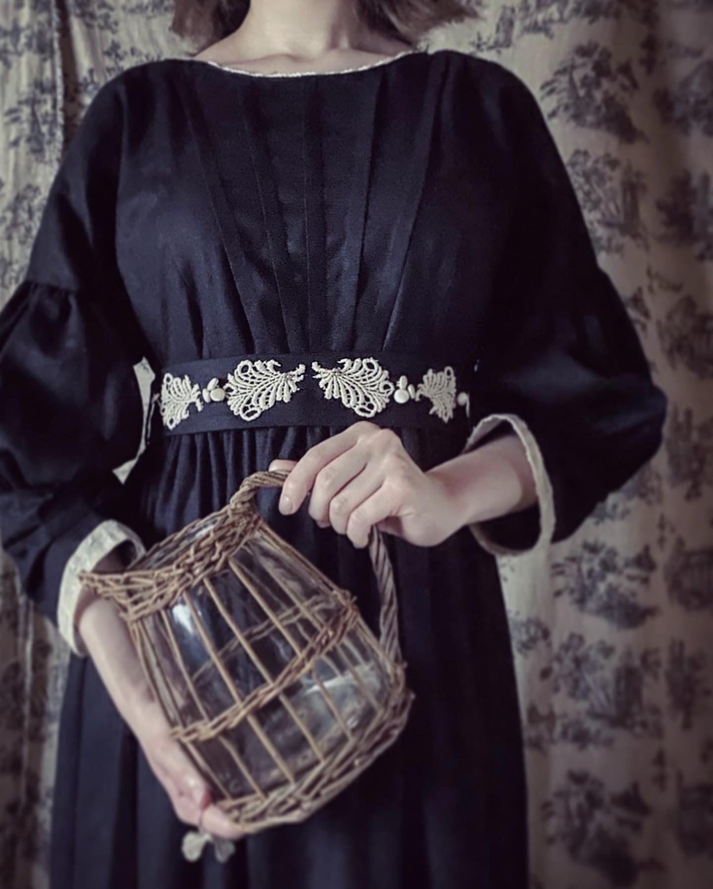 ※レース、くるみ釦は一つ一つ手染め、手縫いの為、多少の色の差や位置の違いはご了承下さいませ。