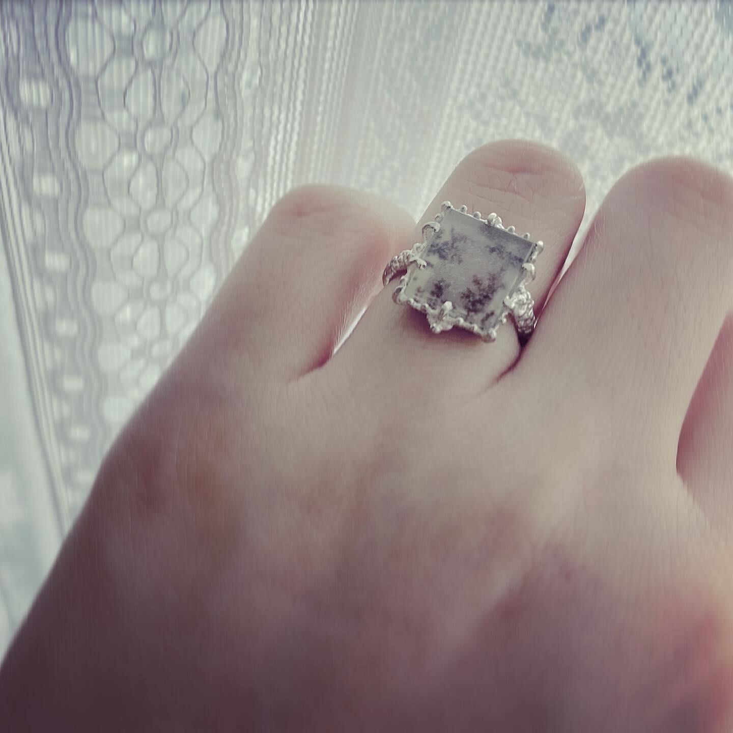 まるで氷漬けになったシダ植物の様なデンドリティックアゲートを使用した一点物のリングです。